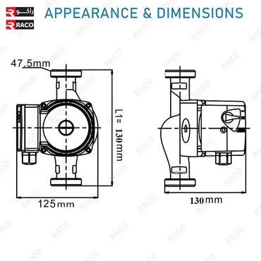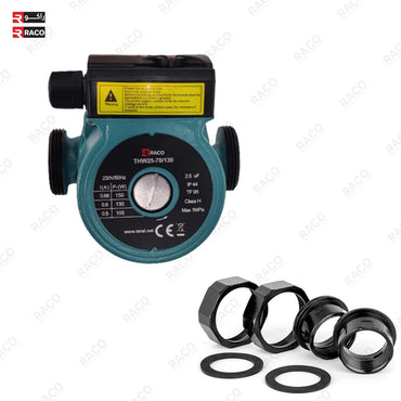 Circulation pump 25-70/130 for water circulation. 3 levels of manual operating adjustment I-105W, II-130W, III-150W. 4200 L/H