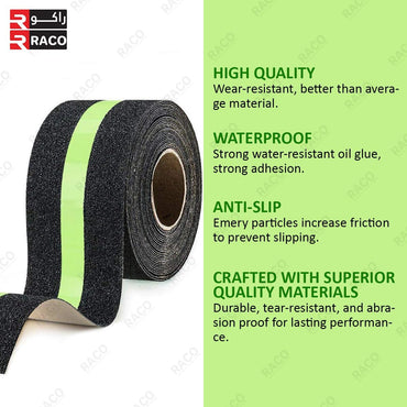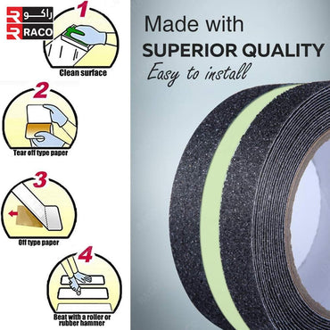 Stay safe and secure with RACO Giffex Anti Slip Grip Tape with Glow in the Dark Strip. Whether you're protecting loved ones at home or creating a safer workplace, this heavy-duty traction tape delivers outstanding performance, day or night.