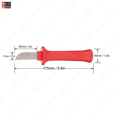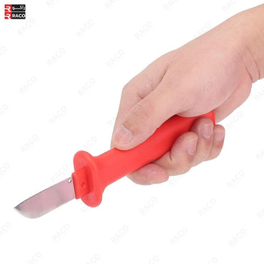 Upgrade your electrical toolkit with the RACO Electrician Stripping Knife, expertly designed for clean, accurate insulation removal. Whether you're a professional electrician or a DIY enthusiast, this high-performance knife delivers fast, precise results with minimal effort. Its high-carbon steel blade ensures long-lasting sharpness and strength, while the ergonomic insulated handle offers maximum comfort and safety during extended use. The included protective scabbard keeps the blade safely covered when not in use, reducing the risk of accidental cuts.
